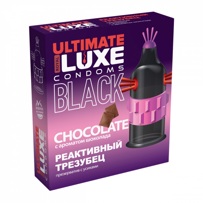Стимулирующая насадка-презерватив "Luxe Реактивный Трезубец" черная, с ароматом шоколада